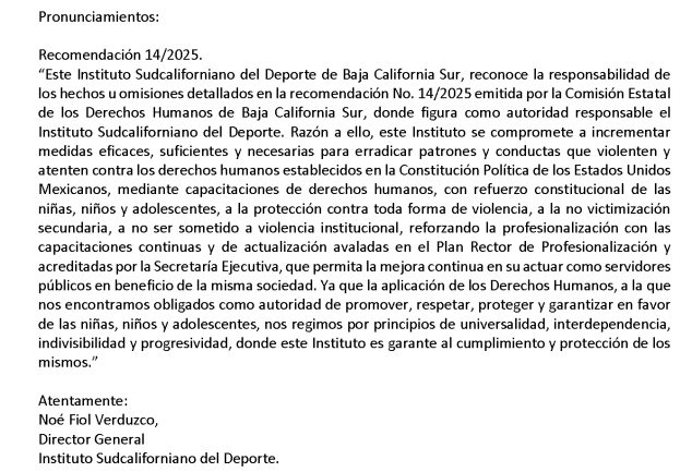 Lograr que el Estado de Baja California Sur sea reconocido con alto índice de cultura física en donde se practique actividad física, recreativa y deportiva a través de programas permanentes que apoyen directamente a la formación de la sociedad Sudcaliforniana con población más sana y competente, con amplio potencial de trabajo en equipo reflejando un mayor desarrollo humano y social, estimulando el mejoramiento de las condiciones de vida de sus habitantes y que desarrolle deportistas de alta calidad.